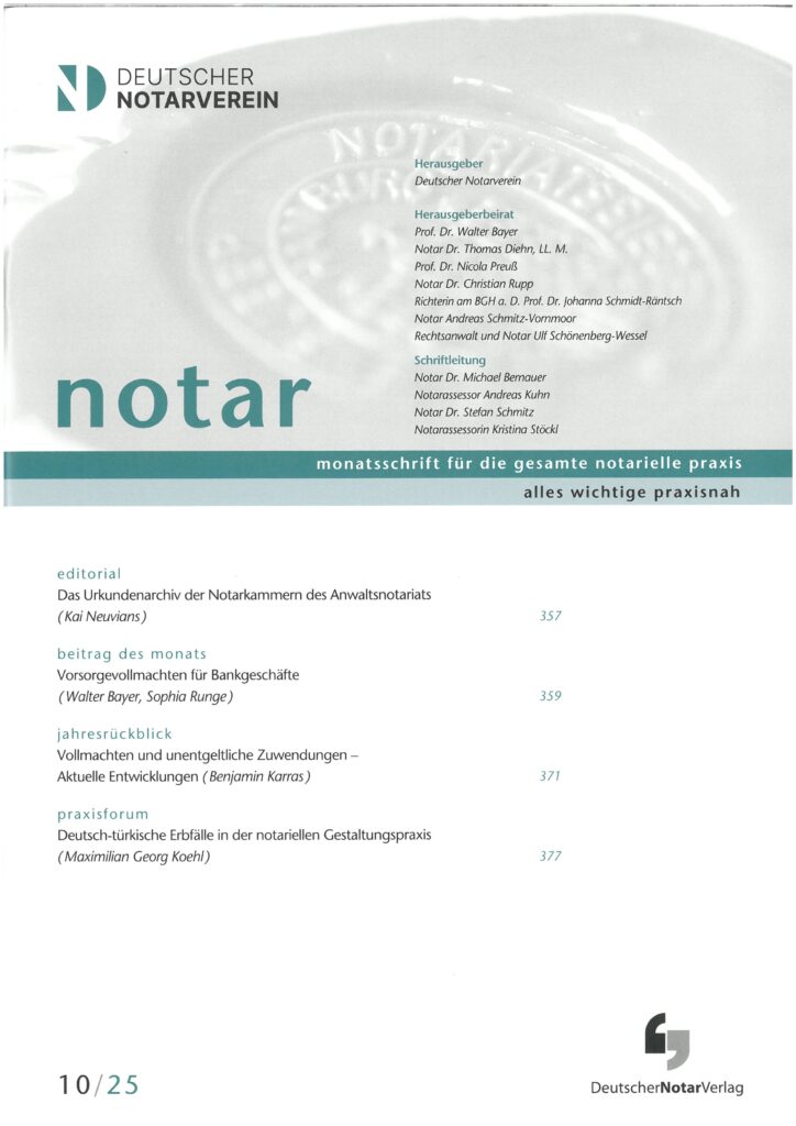 Deutsch-türkische Erbfälle in der notariellen Gestaltungspraxis (Maximilian Georg Koehl)