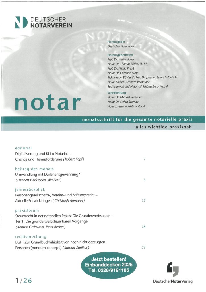 Umwandlung mit Darlehensgewährung? (Heribert Heckschen, Aia Best) - jahresrückblick