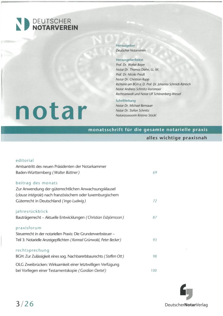 Zur Anwendung der güterrechtlichen Anwachsungsklausel (clause intégrale) nach französischem oder luxemburgischem Güterrecht in Deutschland (Ingo Ludwig) - jahresrückblick