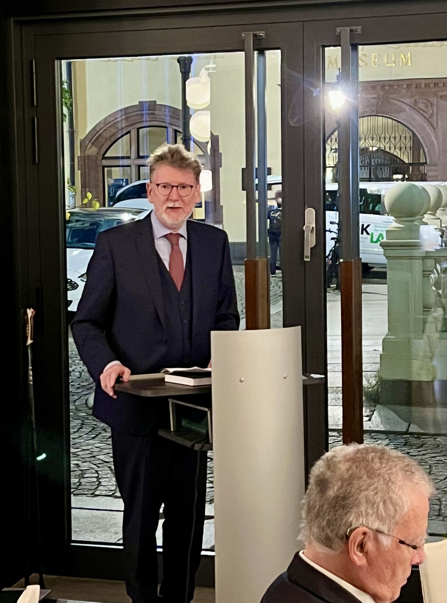 Festredner waren die langjährigen Wegbegleiter des Jubilars, Notar Dr. Christian Rupp, Präsident des Deutschen Notarvereins, Prof. Dr. Walter Bayer, Inhaber des Lehrstuhls für Bürgerliches Recht, Handels- und Gesellschaftsrecht, Privatversicherungsrecht und Internationales Privatrecht, Friedrich Schiller-Universität Jena, Direktor des Instituts für Notarrecht, sowie Dr. Kai Woellert, Notar a.D. und allgemein beeidigter Dolmetscher und ermächtigter Übersetzer für Schwedisch.