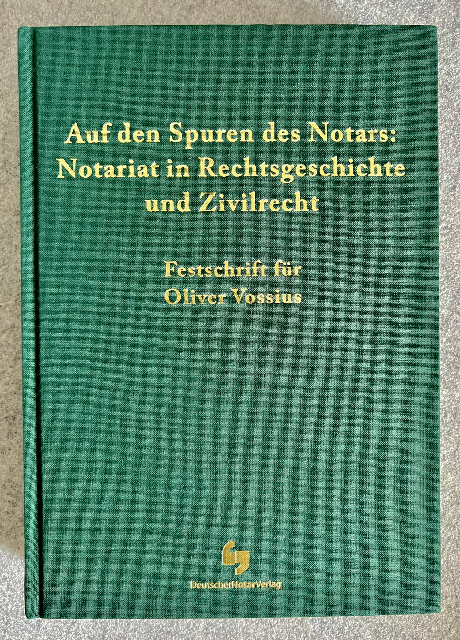 Im Rahmen eines festlichen Empfangs zu Ehren von Herrn Notar Dr. Oliver Vossius, welcher am 15. September 2023 stattgefunden hat, wurde dem Jubilar eine Festschrift überreicht. Herausgeber des Liber Amicorum mit dem Titel „Auf den Spuren des Notars: Notariat in Rechtsgeschichte und Zivilrecht“ sind Prof. Dr. Walter Bayer und Prof. Dr. Mathias Schmoeckel in Verbindung mit dem Deutschen Notarverein e.V..